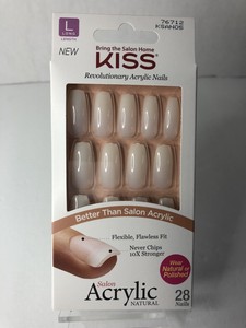 Kiss Salon Acrylic Natural Nails. Created with acrylic-infused technology, these natural nails are strong just like salon acrylics but have a bubble-free, flawless finish and are thinner at the cuticle for a seamless look. Although I love the Kiss natural nails these ones weren't the exact ones I ordered.