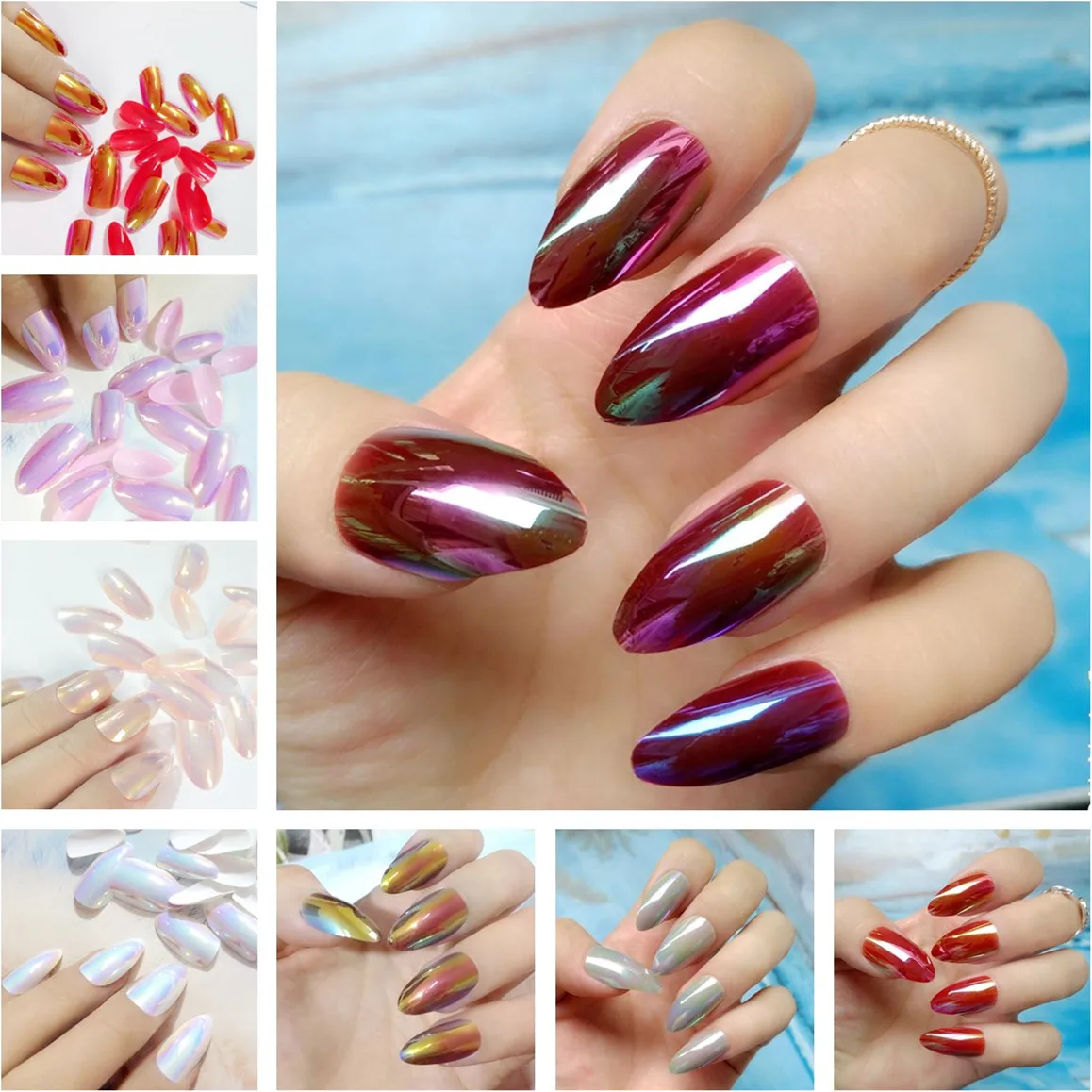 24Pcs Short Stiletto Nail Holo Acrylic Fake Nails ...