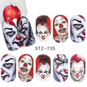 Nail Art Stickers Water Decals Transfers Scary IT Clown ...
