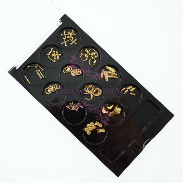 60pcs Nail Art Alloy Charms Gold Tone Bar Circle Teardrop ...